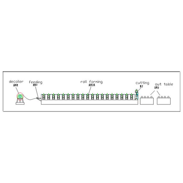 Floor deck cold roll former mainly consists of uncoiler, roll forming stations, cutting device, run out support frame, electrical control system and hydraulic station. Steel coils go under decoiling/unwinding, feeding and deviation adjustment, roll forming, cutting to required length and then output the steel decking sheets as required.